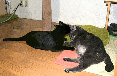![]() みんなで夕寝している・・・・むさ苦しい。 この場所が一番涼しい・・・。 てつとぶんたろ〜・・菅又にびったり。 冷房を27度に設定していても実際は30度までしか下がらないのだ。 |
