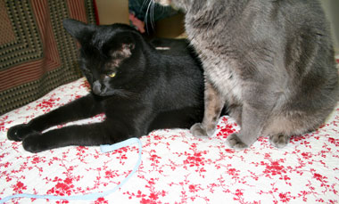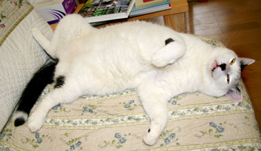 ![]() 暑さに負けず熱さに負けず田崎膝に乗るてつ・・・。 新聞の上。 嬉しいので机を揉む。 儂は暑くてだらだらよ。 |