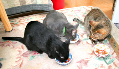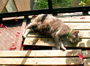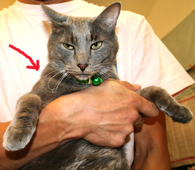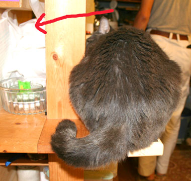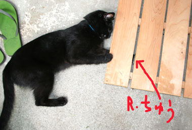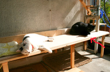 ![]() 偽縁側好評。 でも意地悪やっちとさすけ。 他の猫が上がると叩いて囓って、困った物だ。 矢印まで絨毯があるので、縄張り・・・その外は時々ok〜。 |