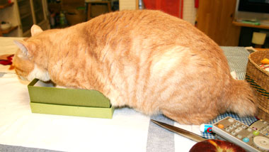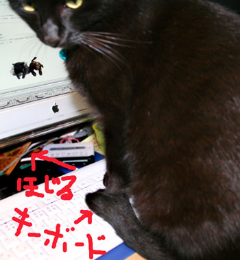 ![]() この薄いキーボードは使いやすいのだが、猫もまったく気にしないのが困りもの。 モニタの下からいろいろ発掘ぶんたろ〜。 |