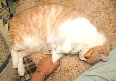 ![]() いつも耳が冷たいぶんたろ〜・・・・耳でかだから。 田崎フェイヴァリットなふわふわ毛100%毛布を掛けてやったら大満足らしい。 手を開きっぱなしで熟睡。 |