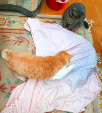 ![]() くたくた猫が。 というか・・・ぐったぐった。 やっちは走り回り囓りまわり元気元気。 |