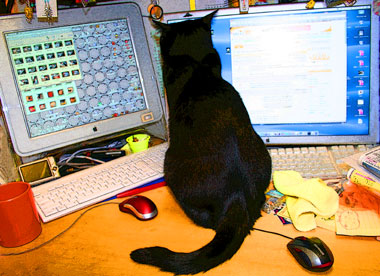 ぶんたろ〜。3階で遊ぼうと呼ぶか、モニタ前で居座るか、寝ているか。行動は簡素。 菅又は多忙。近所の壊れた風呂緊急下見、総取り替え決定、台所も総取り替え決定。 別の・・近所の風呂タイル貼りと流し配管水漏れ直し。 田崎は多忙。11月飾りを作らんと作業なれど、電話電話電話電話訪問訪問。細切れに出たり入ったりしたので・・猫が大騒ぐ。PC作業をしていたのだが、中が重く不調なので・・・細切れ作業と出たり入ったりと・・猫が乗りまくったのでますます不調。 ハードディスク中身を焼いている。でもカレンダ作業などで画像をいちいちDVDから読み込むのは時間喰い。と云ってでかい容量のHDDを買おうとする安直田崎。 首頭痛は治った。やはりマットレスの堅さが問題らしい。しつこく原因追及解決快感。 昼・インスタントタイカレェ、夜・鶏おこわと鰺干物とメロと甘卵焼きと豚醤油と昨日の牡蠣鍋残りと和みセット。 |