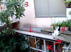 箪笥を2個置いて板を渡して・・窓から外が見えるようにした猫場所も仮で作った。