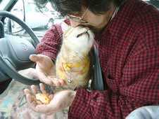 う・・・・うううううう。 今日は猫相関図で忙しかったので無し。似てる似てる似てる。どnとぶんたろ〜。 膝に乗るのが好き好き。膝の上で喰いっこ。 うちの猫始まって以来の、茶目の猫らしい・・ぶんたろ〜。目が怖いぞ。 夜になって風が強い。 ・・・・・・。 ブル〜シ〜トがばたばたばたばた。 てつは怖くて怖くて大変。 田崎も怖いぞ。 ブル〜シ〜トが飛ぶ。その上の角材が飛ぶ。その下の天井が飛ぶ。そのまた下の、部屋の中のいろんな物が飛ぶ。・・・。 早く作り上げないと大変だ。 先だって安かったラム喰った。ビタクラフト鍋でふっくら、グリルで焦げ目。美味であった。 ![]() 【菅又の一言】・・・《3階が出来上がるまでは、強風でスルリとサスペンス。》 ![]() うちの新しい動物。 たぶnフェレットか、てん・・・かなぁ〜。 何かやけに胴の長い生き物。 |