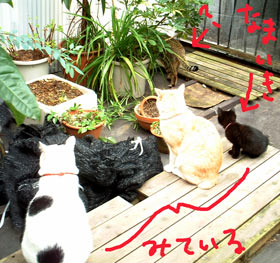 仕事2件終了〜。や〜い高級便所取り付け終わった〜。 一度帰宅後、昨日の修理物を仕上げてお届け。 神戸屋でパン買おうと思ったら、全然無い・・売り切れてた。 ほんのちょっとの昼間のお日様、みんなでぽかぽか。今日も田崎は昼前に帰宅。 毎日なるたけ日光浴。ビタミンD。 さてこの写真の足りない物は・・・。 毎度の事ながら、場乱しのこちゃがいないさ。 スト〜ヴつけた。 【菅又の一言】・・・《仕事先の猫たちも手伝ってくれる。あ〜こりゃこりゃ。》