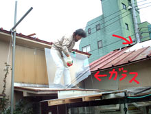 な・波板。ポリカ〜ボネイトの透明波板。![]() 田崎得意の波板。人に云うと引かれてしまうが、いいぞ〜〜ぉ。軽いし安いし明るいし強いし扱いやすい。何よりいいのは雨音が聞こえる事さ。雨音と風の音は大事。 菅又は3階を作る。がんがん作っている。 屋根の天窓は完全終了だし〜、鍋やっても天井の換気扇回せば完璧さ。 で、鍋・・。ずわい蟹。 楽っのしくねぇぇぇ〜〜!! まずガス台で焼いたのをだいが喰って〜〜、他の猫たちは〜、カニかまにちょっと本物まぶしでごまかし。 鍋にしたら〜〜、やっぱり別腹でだいが欲しい、てつも欲しい、あげくにぶんたろ〜も欲しい。殻を囓りたい。田崎なんかただでさえ蟹は面倒だし、さほど・・・なのに〜、ひたすら猫のためにほじるだけ。蟹好き菅又は悲惨の極み。半額の誘惑に負けた菅又の大間違いさ。猫のためなら諦めて食べられないと考えるべきよ!!蟹鍋なんか最低。 後半は食卓でカニ足と遊びたいだけのぶんたろのために、田崎、紙玉投げて遊んでたわよ、夕飯諦めて・・・・。ばかぁ〜〜。 菅又は六本木に風楽舎の照明引き上げ。あっ、今帰ってきた23時。明日は菅又建設足場掛け。 【菅又の一言】・・・《みなさまに召し上がっていただいて大変しあわせでございます。ばかやろ〜。》 例によって、てつはゲロした。・・・・・・・・。 |