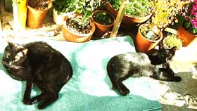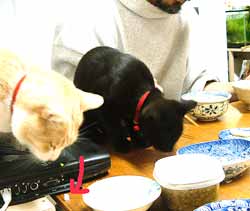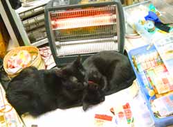 今日もだらだらわたわた。 外は気温が低いので、猫たちは遊び足りない。屋根裏仕事の菅又はまだいい。 田崎は何をするにもどこに行くにも、沢山のお供。 細かいビ〜ズとか糸とか文房具とか、あらゆる物をきちんと分類分けして整頓中。 電気スト〜ヴは黒猫のもの。てつ・やっち・こちゃが来ても、すぐ黒猫軍団に囓られて退散。で、うろうろするわけだ・・・。どちらも迷惑。 スト〜ヴにべたぁ〜とくっつくので、下のヒ〜タ〜は消してある・・。すべては猫のため〜猫の物〜猫が王様〜〜。