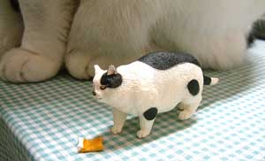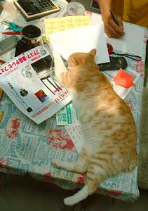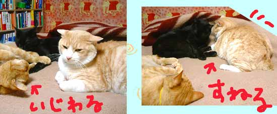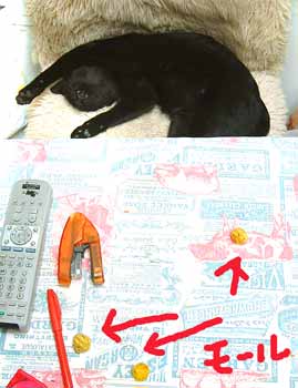 てつは何だか怖いので、人にくっついてばかり。 半日は机の上で暮らす。でも夜になると外は静かで怖くない。 昨夜の獲物・蛾・はてつが捕ったのかもしれない。家の中に持ってくると、みんなにあげちゃう。気前がいいのだ。 やっと菅又パパ仕事が終わったらしい、これで工房外・うちの駐車場は静かになる。車もとめられるぞ。ほぉ〜っ。 だいはいじわる。特にこちゃに、てつにも。 やっちはいじめる。最近はちょっと大人しいけど。 てつは本能。隣に暖かい首筋があると、噛んでしまう。 こちゃはこども。時々ムキになって、てつとぶんたろ〜を泣かせる。 で、どnは何だろう・と・さっき悩んでいた。 だいややっちに、うるうるぐるぐる何やら文句を言う。 こちゃを囓ったり追いかけたり、鳴かせる。 でも悪意はないぞ(えこひいき)。毎晩田崎懐で寝るし。 ・・・・。 今日は田崎は銀行業務、馬場駅近辺ぽこぽこ。 首がこったのが治らないので、ビタミンE買ったぞ。毛染めやらイオナ化粧水やら元気のもと・アリナミンV〜〜も買ったわ。 本屋にもだらだら行ったのでちょっと元気復活。領収書と作業日誌を照らし合わせ作業。 夕飯はなにやらいろいろ・朝飯風。 【菅又の一言】・・・《何故突然鼻が垂れるんだろうね、てつ。》 |