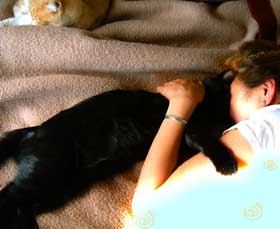 ちったぁ掴まって欲しい。 うちの猫はみんな肩猫。は、いいのだが、掴まってくれない。 手足だら〜n。だから人がしっかり掴まえておく。重い・危険。 今日からがしがししっかり頑張る。 はずだったのに、なんだかな〜不元気。 昨日から暑かったので、今日も暑かったので、夏ばて。か、・・・。 ちょっとだらずる。 厨房作業台作ってもらった。パン捏ね台。 午後、だい連れて車。 大塚・萬スタヂオの風楽舎・元亭主んとこにちょっと仕事用件。神戸屋パン。どnの薬貰い。 帰宅後、あちこちの暑さ対策。黒寒冷紗張り。 やっぱね、暑いのよ、天窓と屋上。風吹くからいいけど、でも気温は上がるわけよ。
