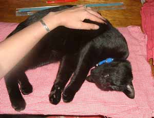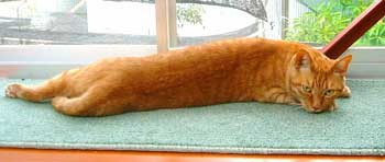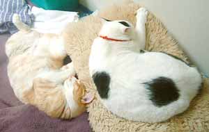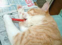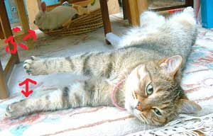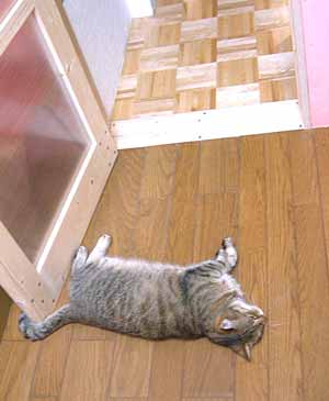 腕、何故閉じない・・。 ハムスタ〜や兎みたい。彼らは横になって寝るとき、上側の腕が下りないのよ。階段前や机下で、だ〜らだ〜ら。 早く出かけないかな〜と待っている。でも、今日はだめさ。(午後滝野川まで注文していた文房具取りに行ったけど、暑かった・急いでいたのでおいてけぼりさ)。 先週余分に作って保存してあったア〜モンドクリ〜ムで、珈琲ケェキ。菅又が好き。 5年前の賞味期限のインスタントシュ〜クリ〜ム箱を見つけて作ってみた、膨らまずまずい。・・・。何故あったのかな〜・・・。それよかよく作った自分、かなり賞味期限に神経質なのに・・・。喰ったし。 居間に3個目の机セット・90×120。 作業用兼食卓・パソコン用(液晶2台乗っている)・巨大縫い物用。 で、猫共共共がわらわら乗ってくるので・・・ああ〜。 嬉し楽し、でも作業は遅れまくる。 又や堂常連さん兼お友達のホ〜ムペ〜ジがいくつかある。知っている人の毎日日記はとても楽しい。会っていなくても近況がわかるのも楽しいし、元気なのを見るのも嬉しい。でも何日か更新していなかったり、元気がないようなことを書いてあると気になってしまって、こんな事なら店を開けて、週に一回でも会える方がいいな、とか考えるのだ。漫画家さんは時々絵も描いてupしていて、やはりプロフェッショナルわざは違うのよ〜。 毎日更新しているのを、毎日見たいのだけれど、田崎のブックマ〜クしているサイトたちったら、不定期が多くて欲求不満。最近見つけた絵日記グル〜プは面白くて毎日更新していて、でも絵って一目見ると終わってしまうのが悲しい。 先日から又や堂も丸1日更新しなかったらどうだ〜、と、誘惑気分。 でも心配されたら悪いし、せっかくここまで毎日更新している記録をとめてしまうのはいやじゃ。3ヶ坊主ぢゃない証明〜。 ゆるめのたらたら売り物パンツ作っている。 昼・インスタントカレ〜、夜・たぶんまた色んな朝食風のを食べる(まださ)。 【菅又の一言】・・・《久しぶりに作った猫登り棒は2寸角で頑丈。》 うちのももっと作って。 |