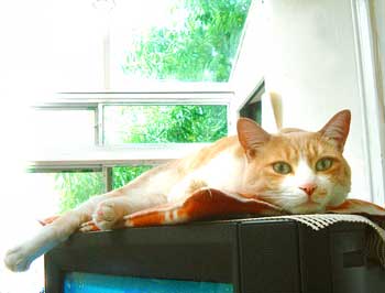3階への階段で、しっぽ遊び。 どnもこちゃもてつも優しい。巨大になりつつあるぶんたろ〜なのに、遊んでやる。どんなにしっぽにじゃれられても、怒らない。辛抱強く遊ばせる。睡眠不足と湿気に負けた昨日のせいで、だ〜〜〜らど〜〜〜ろの1日だった。 田崎はね。 【今日の問題】・・・田崎はめんどくさい。(低気圧と疲れで頭痛だった) 天窓にからくりテントを作る材料買いに行かねばならないのだが、天気があまりに不安定。 暑いと窓は全開に、雨が降ったら半分は閉めないと吹き込まれる。すんげぇ暑くなっていたし、でも曇天・いつ降るか時間の問題だし、困っていたのさ。うさぎは暑さに弱いからまずい。 時々降るので、開けたり閉めたりの1日。出かけられなかった。 夕方近所に猫缶買いだけ。 モニカ・ベルッチとジ〜ン・ハックマンの映画に行こうと思っていたのだが・・・めんどい。 と、云うことで、DVD借りてきた。今からソファで長くなって夕飯しながら、《ハリ〜ポッタ2》と《バイオハザ〜ド・映画館で観たけどさ》《タトゥ〜・独サイコ物》観る。 難しいのは面倒くさいので、いかにも土曜のだらだら気分な作品さ。 昼・昨日のケェキ、夜・角煮丼とピ〜タン冷や奴とロメインチ〜ズサラダと冷やし茶碗蒸しと鰹・・予定。 本当は今日は、店仕様・客人の話相手・ではなく、普通に酒が飲みたい気分なのだが、ともかく歩いて出かけるのが面倒くさい。誰か飲もうぜ。ああ〜でも貧乏だ。渋く飲みたい。西荻のはるばる亭なぞいいな。ああ〜でも帰りが面倒くさい。でも飲みたい。 【菅又の一言】・・・《昨日に続いて湿度計男大活躍。》 菅又がいるだけで、部屋の湿度は上がるのだ。 |