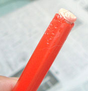 ![]() ![]() ![]() がぁぁぁぁ〜〜。赤サインペンは全部けつ蓋が壊れている。今回は口も紅くなった。 |