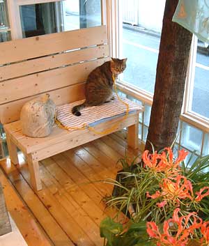 店の真ん中でどnが睥睨。 疲れた。毎晩眠りを邪魔されるせいだ。 朝からゆるゆるとケェキを作り、料理を作り、平和。 でも2階は32度くらいで、身体はその温度でなれているのだが、1階はお客人のためにク〜ラ〜。 これに負ける。 最近猫達は開店から店にいる。 ぶんたろ〜は日に日に慣れてきているし、だいは脱走目的、てつはいつもながら。今日はどnが何やら遊びまくっていた。やっちは棚にはまって寝ていたし。 夜営業終了間際(というか、終了後、みんなで騒いでいたとき)、消防車の近い音。又や堂の前を戸塚警察に向かった坂の突き当たりに赤いくるくるが見える。 常連の方々と見に行ったさ、食後の散歩がてら。戸塚警察向かいの古い大きな・又や堂が一昨年だかに2軒改装した・マンションの、真ん中くらいの部屋で、ぼやらしかった。 昨日は角の八百屋さんに、救急車来ていたし、まったく馬場は不穏。 疲れて右の肩が痛くて痛くて・五十肩っす・ピップが利かなくなってきたので、寝る。 昼・まかない飯、夜・定食セットとケェキ・・・おうっぷぅ〜。今日の飯はここ 【菅又の一言】・・・《ぶんたろ〜はお客さんが怖い。でもボ〜ルを投げてくれる人はいい人。》 |