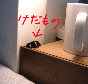 打ち合わせ先の初めてのお宅・だい猫は台所カウンタ〜に座る・・・。![]() 以前ご近所のお家に遊びに行った時、蟹缶を貰ったことがある。台所で。 それ以来、どこの家に行っても、すぐ台所。 ・・・・・。 風呂に行って水を貰う・勝手にBedに行って寝る・等、得意。 そ・掃除が不得意が問題点の我々。 せっかく必要な物を買ってきてもすぐ家の中で行方不明、あらゆる物が混沌。非常にストレス。 お金を出してでも、掃除をして貰いたい。でも動物も多いし、どこをどう頼んだらいいのか考えるのも大変・・。 午前中から仕事。所沢。雨かもしれんと、だいも一緒だったが、どんどn暑くなる。 夏か〜〜?夏か?夏か〜〜? 午後小金井。新居の棚2個のお仕事頂いた。謝〜。 まったく暑くなったのでこの新居にだいはおじゃま。ふんふn。 その後小金井ドイト・賃貸駐車場のタイヤ止め探し・無かった。 最近、以前はあった色々な素材がどんどn無くなっている。需要が薄いと撤去されちまう。不便。西荻コジマで、猫治療用カリカリ・phコントロ〜ル・フィッシュテイスト。コジマは動物病院もあるので売っている。普通のペットショップでは売っていない。でもコジマは嫌い。売ってはならないサイズの犬猫がいる。売られている動物を見るのはいや。・・・臭いし。 どっか他に売っていないだろうか。 昼・・・・・・・、夜・昼兼用・カップフォ〜とかなにやら・・・。今辛いサラミ喰ってる・・。 最近外では勧められるまま何でもがぼがぼ飲んでいる田崎だが、家では全く飲まない。サラミだけ。 みんなワインをがぼがぼ飲んでいる、1本2,500円とか。菅又はいつも安い端麗・偽麦酒を1本だけ飲んでいるのだが、なにやらなんな気がしてきたので、普通のラガ〜を買うよう勧めている今日この頃。1日端麗1本でも休肝日は毎週1〜2回ある清く正しい菅又である。 【菅又の一言】・・・《小金井の島忠にも竹シ〜ツがあった。商品名『まあぢゃnシ〜ツ』。なんぢゃと〜。》 |