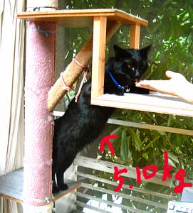 ぶんたろ〜ちゅくちゅく。 ほらね、まだ全然仔猫。大きな手でもみもみもみもみ、本当は田崎2の腕をもみもみ、爪は出さないので痛くない。 めんこくてめんこくて。でも毎晩毎朝・・眠い。ちゅくちくした後、シ〜ツがべちゃべちゃ冷たい。吸っているんぢゃなくて、涎出しまくりらしい・・・。 借りてきた《フィアァ〜ドットコム》観るので急いでいる。 朝・渋谷ハンズ・もりもっちゃん、昼・浦和・風楽舎照明引き上げ・馬場荷下ろし。休憩。夕方・吉祥寺・米食品買い。硝子屋から連絡がない。見積もり出ないわ。 米が無い、米が。普通の飯が喰えなかったこの数日。大袋タイ米を買いにカルフ〜ルにもいかんと。 今週の又や堂喫茶部夜定食は、また中華予定、来週はカレェ予定。そのあと8/15からは休み。 昼・神戸屋買い食い(田崎はちょっと飽きてきたのだが、菅又はまだまだ)、夜・吉祥寺で半額寿司買い食い(蟹は全部だい猫に喰われた)、インスタントとろみラ〜メン、風呂から出たら鰹の南蛮漬け・麦酒でビデオ観る。 【菅又の一言】・・・《塵も積もれば山となるを、湯水のごとく使いたがる政治家さnの馬鹿。》 内消費税の新聞記事を車の中で読んでやったコメント。最近忙しいので新聞は移動の車中で読むことが多いのさ。