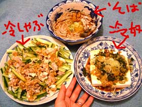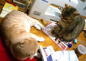 自分の汗で溺れるところだったぜ、夏。 でも、それでも去年よりは全然過ごしやすい。天井が高いから、3階に向かって窓が開いているから。さ。あちこちダクト音がうるさすぎるので、3階・屋上は《物干し》と認識する。3階でだらだらするとか日光浴するとか本読むとか昼寝すると考えないようにする。・・・。 今日の画像の矢印は・・・・針刺しカヴァァ。やっちとぶんたろ〜が針を口でくわえて抜いて、その辺に散らかす。・・・。 縫い物1日。 夕方友人が来たので、またまた近所のカフェ。だって2階は暑いもん。 明日小金井に設置の予定だったが、明日もう一度塗りをするのと・・・・丸鋸ぎゅんぎゅn非常にうるさい作業有り・・・なので・・日曜にうるさいのはいやだいやだ・・・設置は明 後日に。昼・冷やし中華、これがまたえらく頭の悪そうな・・・なんだか男兄弟ばかりの夏休み風・急いでいい加減に大きく切って作ったのは田崎さ、ふn。夜・玄米とゴ〜ヤチャンプルと胡桃豆腐と枝豆豆腐と毛蟹・・駐車場の店子さんに頂いた・・猫が喰った残りを今菅又がほじっている・田崎もほんの一かけ。 【菅又の一言】・・・《手が臭い。》蟹は手が臭くなるさ。毎日あちこち臭い菅又・・・。いや。