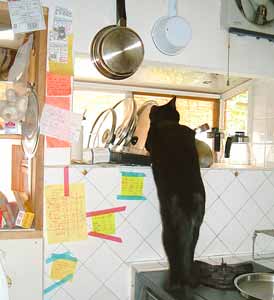がぁぁぁぁぁ〜〜。 暴れてやる〜。みんな邪魔〜〜〜。特にてつ〜〜。作業している真上に乗る〜〜。がぁぁぁぁぁぁぁぁ〜〜。 鉛筆やサインペン勝手に喰う〜〜。 やっちはあらゆる物を下に落とす〜。 どnは布の上からどうしてもどかないと云う〜。 ぶんたろ〜はひたすら遊んで〜と云うし。 だいは出かけようと云って田崎の廻りをうろうろ、時々湿気った鼻をくっつけ足元でだらだら。 おまいらの奴隷ぢゃないぞ。 お友達あちこちと電話。仕事だらだら・・猫のせいで。 天気はやはりはっきりせず、あげくに夕方雨降ったぞ。 ![]() 結局菅又仕事は夕方仕上がって、大森到着19時半。 電気増設工事やら棚板増やし。中に予備ベンチを仕込んだからくりベンチ設置、TV棚設置、カ〜テンレ〜ルカットと取付。次回工事の打ち合わせ。大森出発22時半、地下鉄工事で混んでいる明治通り通って、帰宅は23時40分。ほ〜、1つ終了〜。ありがとうございます〜。詳細は外仕事。 明日から大棚作り。 昼・冷し中華、夜・不審なス〜パ〜で買った・虫付きかつおと冷や奴と頂いた梅干し。 【菅又の一言】・・・《物理的な集中力がない。》・・・・? |