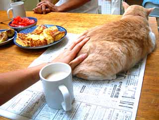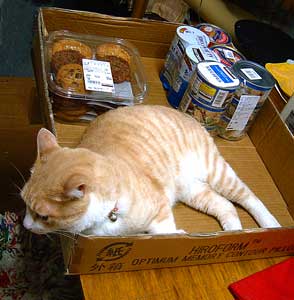 新しい箱は嬉しくて眠くて。 そおいえば、昨日行ったコストコはレジ袋が無い。そりゃ〜そうだ、でかすぎ多すぎ、袋に入らない。巨大なカ〜トをごろごろ車まで押して、車にどんどnぶち込む・状態。ま〜、車でちょっと遠出気分でひたすら冷凍食品、まったくアメリカ。会員用顔写真付きカ〜ドが必要なのだよ。 店の改装に入った。 侃々諤々。嘘。もう決まっているので、さくさく。も、ちょっと嘘かも。 ともかく、壁付けカウンタ〜は取った。売りに出している。あんな大きいの普通つけるとこないよな、売れないな。 ガス水道付け位置をちょっと考えて、さくさく。 ハンズメッセに行く予定が、多忙。嘘、雨だと思ったのに晴れたので、猫ク〜ラ〜はどうすりゃいいんだと悩んでいるうちに、遅くなって出られなかった。 夜、鯖ちゃnちに夕飯およばれ。コ〜ヒ〜豆のわに夫婦と全部で6人。 わぁわぁ盛り上がって話しまくって、帰宅は1時過ぎたので更新が遅くなった。 半分嘘、猫に飯騒ぎ、だいがてつを喰う騒ぎ、珍しくぶんたろ〜ゲロ騒ぎ、3階からじゅうたんごとぶんたろ〜とこちゃが落下騒ぎ、で、いやます遅くなった。ほ〜っほっほぉ〜。 昼・コルトスピザ1/4、夜・お呼ばれ飯はふはふ。 【菅又の一言】・・・《珈琲の本を書いている人と飲んだ、目の前で珈琲を入れてくれた、おもしろ〜い。》本当に美味しいのだよ。やはり、でも、想像以上に恐ろしく違う。