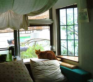 ほっぺが、いや、ほっぺも超デカ。こまわりほっぺ。 朝8時半から夕方17時までしっかりきっちりばっちり植木屋さんに作業して貰った〜〜。知人の役者さん兼植木屋さん。先日あちこちのメディアに《元中村座のベテラン復活》といっぱい載っていた・・・。そんなすごい方に植木切りを頼む又や堂である。ふふふ〜〜n。 ば〜ちゃnが死んで引っ越して以来初めての本職剪定である。 無花果と桑とジャスミンは《程度》を聞いて自分でやった。ごぉぉぉ〜〜〜そっりばっさり。でも無花果も桑もちっとも変わって見えない。ジャスミンは電気屋さんに切ってくれと云われていたので、屋根から電線に伸びていた分全部切った。 伐採前・後はここ。 やっち画像がでかいので、書いても書いてもスペ〜スを埋めるのに、足りない。 そういえばみんなで職人していたら、高田馬場のお祭りがどひゃどひゃ何度か通っていった気がする。 猫達は植木切り見物・お祭り見物でふnふnだった。今日は1日働いたぞ、肉体労働。 昨夜寝る時は34度あって扇風機まわして寝た。夜中にすんごく涼しくなって、窓を 閉めたのに・・・猫共にのしかかられたので結局暑かった。昼・みんなで《とん久》、夜・インスタントカレェ(業務用の変わったのがいろいろストックしてあるのさ)と今鯖ママに頂いた鮭パイとミ〜トパイと、南蛮漬け・・だと思う。 【菅又の一言】・・・《こんなに涼しくても湿気っているぞ。》 追・・・部屋から外が丸見え、って、外からも丸見え。また以前のようにコンビニから部屋の中が見えるぞ。 すごく明るく楽しい。中庭も明るくなって、いつも湿っていた地面が乾かんと欲している。ただ・・・あちこちの元の壁が丸見えになったので、ぼろ〜〜〜い気分。 |