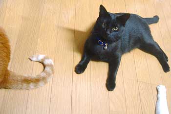 落ち着きが全くないぶんたろ〜。 これはみんなで猫草を喰っているの図。・・・。右の手はてつ・・。こちゃが喰っているので、てつは喰わない、こちゃが嫌い。 ぶんたろ〜はどさどさ喰い終わって、こちゃの尻尾で遊んでいる所。 最近こちゃはだいのことを叩く。近くにちょっとでも来ると、叩く。だいとてつとやっちにいぢわる。でもどnにいぢめられている。ぶんたろ〜だけが仲良し。まったく。 こちゃは、今日は、というか昨夜から、ず〜〜〜と3階で1匹で寝ていた。猫トイレもカリカリもあるから下りてこないでもいいのだ。嗚呼〜男っぽい。 菅又はがんがんに1階カウンタ作っている。らしい。 でも買い物があるというので・充填材(硝子ブロックにちょっと細工を指令したのさ)と石膏プラスタ(田崎が左官する材料)・午後遅く板橋ドイト。 留守番したかった田崎なれど・・・スウプ屋の豚骨の臭いががががががががぁあっぁぁ〜〜っ、臭い。