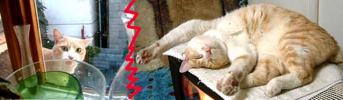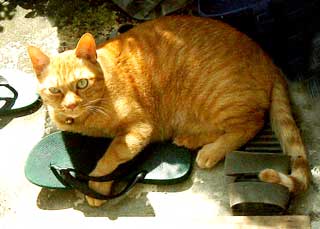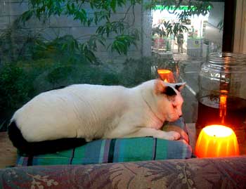 この暑いのに日干し中の座布団の下で昼寝こちゃ。 こちゃはいつでもどこでも潜り込む。暑くても平気・男らしい。寒いのは弱い・やっぱり男っぽい。 今日はもうだめである。 この数日就寝時間が遅い上に、起床時間が早い。 寝るときキュ〜ピコ〜ワアイってのと養命酒を飲む。朝ばっちり起きてすぐ仕事にかかれるのは良いのだが、夕方からへばる。 昼から頑張って夜中まで保つのと、朝から頑張って夕方から疲れまくっているのと、どっちがまだましか悩む。 店の準備のため8時からばたばた。朝飯(玄米飯と鱒子と刺身2切れと玄米茶)の5分と昼飯の15分と職人の昼寝15分以外、座っていない。
