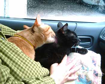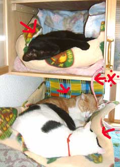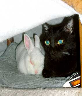 もうこんな季節か〜? 田崎椅子の下、被いをかけて足用ちびホットカ〜ペット。さっきはてつ・どn・ぶ兎がいだきあっていた。 夜、こちゃは田崎脚元と懐いったりきたり。でも抱いて寝るとまだ暑い。 菅又は近所の外仕事予定が、雨で順延。 どnの薬が無くなった。荻窪獣医さnと電話で話し合って、どnを一応連れて行くことに。こちゃに付き添って貰うことにして、無理くそBedの中から引きずり出して車に。でも男らしいのでまったく気にせず、乗ったとたんうんこしっこ。 どnはちょっと体重が軽いのだが、元気ということで、抗生物質とステロイドを飲ませていたのを、ステロイドのみ1日置きに。ちょっと安心。 一旦帰宅後、食材買い。新宿高島屋とハンズ。 今日も低気圧でちょっと頭痛。めまいもいやね。 その後・・・部屋の掃除。でも車に乗って不満気分・甘ったれ気分になっているどnがすぐに抱っこ抱っこと鳴くので、なんだかな〜、の夕方夜だった。 昼・高島屋ペックのサンドイッチと鯵の寿司買い食い、夜・ハンバ〜グとカリフォルニアサラダと玉葱ス〜プ。更新終わったらゲ〜ムか・・。田崎はすでに眠い・・・・。 【菅又の一言】・・・《昨日の雨が遅刻してきた。》