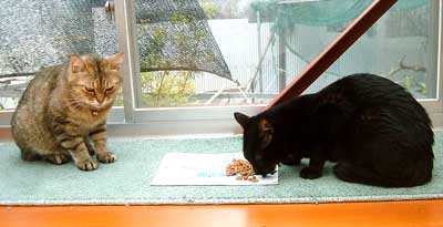 ぶ場所はおもちゃ箱。![]() 何故かこちゃもぶんたろ〜も兎のぶ場所におもちゃを集めてくる。 いつも2〜3個はあるが、今日は5個もあった。 ぶは太っ腹なので気にしない。 よく『兎は臆病で、驚きのあまり死んだりする』と書いてあったりするが、掃除機かけようが電気ドライヴァかけようが車に乗せようが、何一つ驚かない。 最近は猫缶の盗み食いがあまりにひどいので、対抗措置として《青汁》を飲ませる。太い注射器に入れたのを、抱いてたらたら飲ませる。別に嫌がらない。 1回うんこづまりになったとき、獣医に聞いた治療法。野菜は全く喰わないし。 夜、豊島園近くの友人宅に余っていたウィンドウズ(本体のみ)を持って行った。秋のおこわと南蛮漬けと豚卵と葡萄のタルトも持って行った。最近出来た《彼女》の、手作り夕飯で嬉し楽し。 よその家に行って、なつこい猫がいると長居してしまう。 顔の怖いこちゃ・でも凛々しい・が護符。