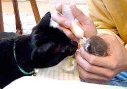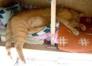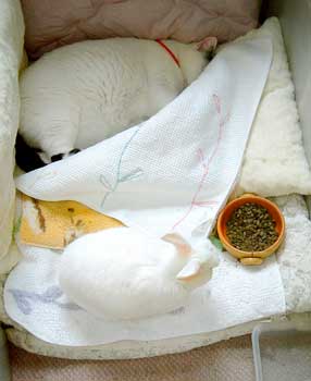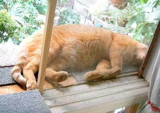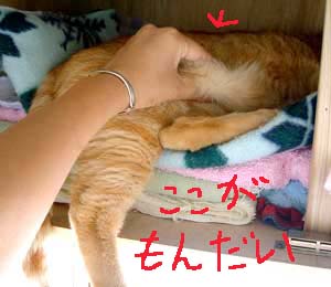 ちびは喰われてしまった。 ぶつぶつ御機嫌さん。ぶつぶつ。めんこく時間がかかるぞ。だい猫もやっちもどんこちゃ軍団もぶんたろ〜も飲んですぐ寝てくれたが、もしくはぶつぶつ1匹でげんこつを舐めたりして放って置いても平気だったが、今回のちびちびは文句垂れ垂れで、時間がかかる。 暑くなったり風が吹いて寒くなったり、ちび猫には困った天気。しばらくは注意しないと、いざとなれば車で連れはこぶだけだが。ちびだい・ちびやっちはあちこちだいぶ出かけたもんだ。 大人猫達は、2階寝室・3階寝室・外。見ぬ振りをして足早に通り過ぎていく。 昨夜はちびがどう騒ぐかわからなかったので、2階寝室で人間の間に籠を挟んで就寝。大人猫達も一緒に引っ越してきたのだが、夜中に何度も3階に行こうと誘われた。だいは田崎胸元に乗って顔に鼻を付けてふんふn。やっちとぶんたろ〜は田崎足元のぴったりくっついていた。ついに5時に田崎は大人猫全員引き連れて3階に。やっといつものようにいつもの場所でみんな安心して寝た。・・・・。今夜はどうしようか。菅又だけ2階か、ちびと。