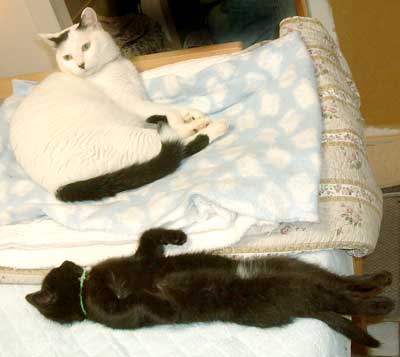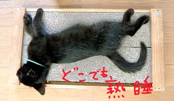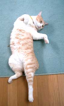 てつ得意の・・・後ろ足爪けが。 高いところから飛び降りるとか何かに驚いて急ストップとか、すぐちょっとした怪我をする。田崎はしょっちゅうチェック。すぐ発見。爪のまわりの皮がちょっとはがれているので、マキロンしゅっしゅ。てつは別に何をされても気にしない。 いろいろさくさく・・・かな〜・・わからない。 昨日買ったまたたび酒をあちこちにスプレ〜、こちゃのしっこ対策。ソファカヴァ〜製作・しっこ対策。 店の新しいテ〜ヴルと椅子にワックスかけ。 夕方からは、さすけがちょっとゲロなので、・・・何も出来ず。何か拾い食いしたか〜〜。毎日いろいろ・・さすけ〜。 その分他の猫が寂しい。って事は全然なく、よりいっそうかまっている。ので、時間がすごく取られている。全員しっかりブラシかけとか、各々と個別に遊ぶとか。ただ、すぐ龍う太乱入ってのがあるので、楽だが。いやそれじゃだめだ・・。 毎日異様に眠い。ちょっとでも飯を喰おうなどと椅子に座ると、むちゃくちゃ我慢出来なく眠い。菅又は更新が長い、半分居眠りしているそうだ。お〜い、さすけ〜。 昼・なんと珍しくすぐ其処の安楽亭、夜・貰い物の冷麺とゴ〜ヤチャンプルと胡麻サラダと水餃子。 あのね、やはり・・・焼き肉屋で勘定していたら、知人にばったり。去年《云う》で一騒ぎだった・・元気そうだった。別に田崎は全然気にしていないさ。 【菅又の一言】・・・《毎日早寝するぞと、1時。》 ゲロっ子は相変わらず甘ったれで膝に居座っている。お願いだから、もうちょっとしっかり〜。くっつき回るし飲み食いしっこうんこで手がかかりまくって、店の準備が進まないぞ。