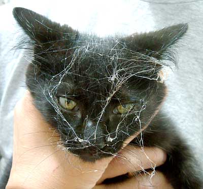 ![]() 罠にかかった龍う太。というか、うちの中庭って蜘蛛の巣だらけか。 |