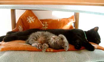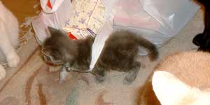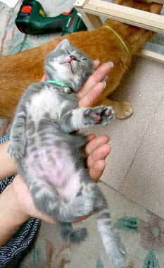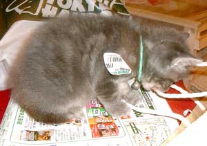 色々雑多な物(箸・飴・タオル)は、龍う太がくわえて持ってくる。田崎毛留めもちょっと油断するとどこかに持って行ってしまう。 かわいい。 ちちが心配するので、さすけをまたまた荻窪に連れて行く。仔猫缶詰の油が合わないのか〜などと。サイエンスダイエット・ガキ用はすごい油だからね。 |