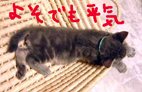 夏だ、恒例のやっちのぼこぼこ。 やっちは蚊に刺されるとぼこぼこ。たまにいるらしい猫のアレルギ〜持ち。 昼に待ち合わせして、秋葉原・吉祥寺・新宿西口ヨドバシ・タワ〜レコ〜ド・南口高島屋地下とハンズ。 今は宴会中。 刺身とオリ〜ヴとフェタチ〜ズ、スコッチと麦酒とカリン酒。 昨夜は涼しくて恐ろしく幸せだったぞ。至福の就寝時間。 昼・インディアンバ〜ガ〜買い食い 夜・とん久に豚カツ。 がはは、ふみちゃn、次は君だ。ダブルとかトリプルの爪研ぎも持っていってください。 【Kの一言】・・・《そろそろふみちゃnに会いたい!! 》 |