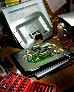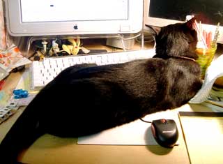 やっちは・・。やっちはでかくて溶けていて・・邪 魔です。菅又場所にて。嫌がらせなので、キ〜ボ〜ドの上に倒れ込む。でも菅又場所だけ。ただ田崎が菅又場所で打っていても倒れ込んだ。田崎場所には殆ど来ない、黒猫軍団+ちびが居るからね。 暑い暑い暑い。昼間は38度で、現在は34度。一日中無風。2階寝室のク〜ラ〜は12時間以上ついたまま。さすがに猿は辛い。小さい生き物には辛い。こちゃとやっち以外全員涼んでいた。人は暑い。 田崎は水シャワ〜。菅又は仕事。 夜高島屋ハンズにしっこ電気買い。 ちぇっ、1.500円の渋い扇風機、Mac用に買うんだった。安い買い物なのに何故か躊躇して後悔。あまりの暑さに脳味噌が半分溶けているのさ。 このまま暑さが続いたら店は開店できない。食中毒が恐いですだ。嘘、暑さ負けして田崎出来ませんだ。店も熱帯だし。明日明後日の様子で・・。 昼・雑穀飯と韓国海苔・・だけ、夜・鶏唐揚げとかサ〜モン刺身とかキャベツとか・・忘れた・・23時半に食べた。 【菅又の一言】・・・《今日も湿度計のメモリを上げているのは私です。》 70パ〜セント。扇風機回しても暑い空気が動くだけ。涼しくない。 |