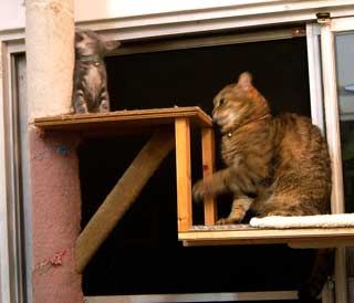 こちゃはユニ〜ク。 聞こえはいいが・・・ちょっと不安って事。三角出窓の窓をぐりぐり開ける取っ手がお友達。彼はどn猫が居なくなったので、誰とも一緒に寝たり遊んだりしない。というか、誰も遊ばない寝ない。・・・自業自得。 やっぱりこちゃしっこはひどく、ねを上げた田崎は対策三昧。 フェリウェイ買って(高い)、フェリウェイリキッドも買おうとしたら・・・よく考えたら窓開けっ放しだから意味無いじゃん。 この三角出窓も作り直す。四角い張り出し出窓にして、全部網戸。最近こちゃはこの辺がお気に入りなので、も〜ず〜〜と1人で住んで貰いましょう。いくらでも外にしっこしてください。部屋はやめろ(怒怒怒怒怒)。 渋谷ハンズでも消臭剤探し、カタログハウスのお勧め消臭剤も買った。 扇風機も2個買った。1.000円とか3.000円(壁掛け・リモコン付き)とか安すぎ。 明日からまた怒濤につっこむ予定。稼がないと泣きます。 昼・神戸屋買い食い。夜・・・何かな・・明日書こう。 【菅又の一言】・・・《暑さに麻痺してきた。》 それは嘘、実際は先日の怒りの暑さに比べてちょっと涼しい。足元では扇風機も廻っているし(Macが熱暴走するのよ)。31度。