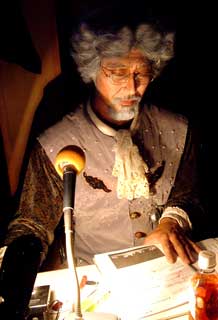 爺ぃメイク扮装で舞台袖でナレ〜タ。走り回っている。 |