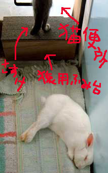 ぶ兎はあいかわらず、ただひたすらマイペ〜ス。 最近トイレの前に偽ペットの壁が建っている。そこにくっついてぶっ倒れている。この画像の下方向から、ク〜ラ〜部屋(2階寝室)の涼しい風が漏れ出てくるのだ。猫達はぶ兎を踏み越えて猫便所に行く。ここは概してしっこ便所。うんこ便所は、菅又隔離部屋のところ。生活から1番遠いところがうんこ便所。仕事打ち合わせが先方のスケジュ〜ル勘違いで、明日に繰り延べ。 菅又の出来上がっていた眼鏡を引き取りに荻窪へ。昨日のギャラの半分以上・・・高級・・。強力強化プラスチックにしたからね。 夕方は頼まれていたほた猫《phコントロ〜ルカリカリ》を持って、週末帰宅中だった鯖ママ宅に。外出予定があったので、そのまま新宿西口まで荷物持ち見送りして、夕飯ご馳走になってしまった。ふふふn。 【最近の考察】・・カップルが離れたとき、財産を買い直すのはいつも女側。知人友人まわりはどこもかしこも男がせこい。せいぜい過去の思い出にすがっていればいいんだけどね。勿論田崎もあらゆる電化製品家具は新たに買ったさ。女は度胸と根性と財力。いぇ〜い。 昼・神戸屋買い食い、夜・小田急ハルク地下でおしゃれなカレェご馳走になってしまった。 【菅又の一言】・・・《やっとまともなGパン買った。》 いくら云ってもなかなか買わなくて、田崎が昨日は出かけにぶち切れたのだ。だらしないGンズは仕事に使えない。 ![]() |