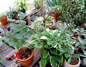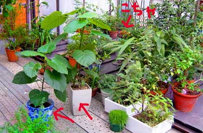 ハ〜ヴもいろいろ。挿し木したのはトロ箱に入っている。