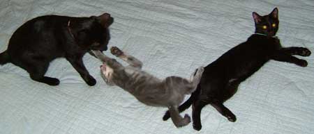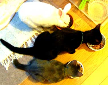 右端はぶんたろ〜。毛質が違う。猫達はみんな毛質が違って面白い。 |