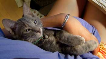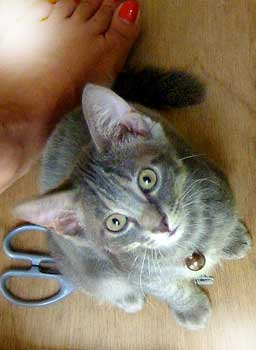 真上から見ると顔の長いのがわからなくて、ちょっと普通の仔猫みたい。 |