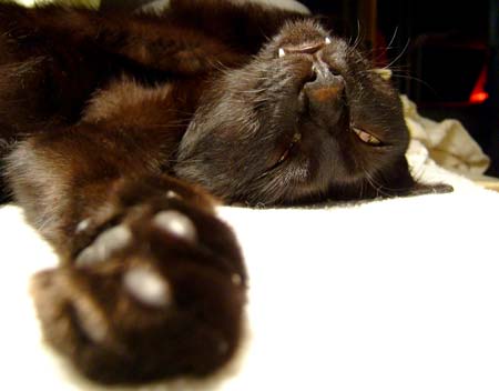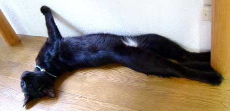 ![]() ぶんたろ〜〜〜〜〜。パソコン脇で元気に一生懸命伸びまくって寝まくる。牙も出ているし、勿論目も開いてこわい。 |