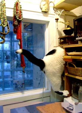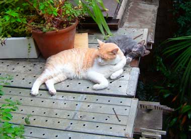 ちょっと仲良し風。 実はこの後大騒ぎしていた。どちらも毛がふくふくして暑苦しい。 最近夜まで仕事が続いていたので、今日は朝はゆっくりめ。勿論5時6時に一度起こされ、8時には起床。 墨田区や上石神井に米届けとか、島忠・ハンズで買い物。加賀屋電気にも注文していた器具受け取り。 日曜にまたちょっと大きい仕事が入っているし。 猫の毛が・・・毛が・・毛がすごいのだ。毎日箒で掃いているのだが、掃除したわきからぽよぽよ。 怒った田崎は使い捨てのゴミ取りモップ状のを入手。暑いからどこどこ抜けまくってもしょうがない。ま〜自分の不手際に怒ったということで。 曇っていて湿度の高い日だった。 昼・菅又ママに手土産買いつつ伊勢屋で買い食い(赤飯握り・山菜握り・稲荷・豆大福)、夜・高島屋でペックのパン買い食いと家で山盛り新鮮レタスとトマトのサラダ。 【菅又の一言】・・・《裏の廃屋は跡形もなくなったので、うちの汚い壁が見放題。》 いや〜〜〜。それよりやはり・・駐車場を鼠が走っていたそうだ。この辺に廃屋のゴキブリと鼠が散り放題。 いや、ゴキブリはうちの猫達が随分捕ったな。 |