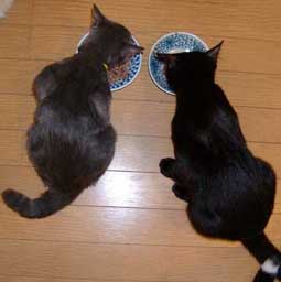 左・ぶんたろ〜と龍う太・・・どっちがどっちかわかるかしら。2匹とも前日首輪を紛失して、ますますそっくりさn。