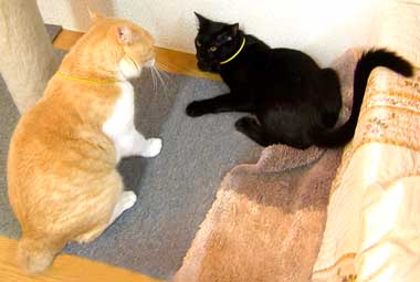 やっちは相変わらず・・菅又にけんかを売っている。 何故に・毎回・絶対に・必ず・どうしても・どんな皿でも・・押し出すんだ!!さすけもそっくり。必ず絶対どうしても押し出している。 てつやこちゃは間違ってこぼしてしまったら、絶対に必ず忘れずに、拾って食べる、皿の周りを回ったり、鼻で押して移動させても拾って食べる。洗い立てのようにきれい。 そうそう、爪切りや耳掃除もてつとこちゃがとても良い子。黙ってじっと切らせたり掃除させたり。 あぁぁぁ〜〜赤猫は扱いやすくて良い子なんだけどな〜〜。でも・・てつはくそうるさく、こちゃはしっこ。 扱いにくいけどしっこしないのと・・どっちがいいか・・・。 当然・・・しっこかけしない方が断然勿論いい!!! 昨夜は2階の寝室で就寝。 いや〜広い〜。足元に2匹(ぶんたろ〜と龍う太)脇にてつ、腹にさすけが寝ていても苦しくなかった。最近は外の音もけっこう静かだし、また2階に完全復帰のつもり。窓も出来るし。床もフロ〜リングになるし。そのうち天窓も出来るし。最後は壁。 おお〜ぉ、寝室最高!!は。近い。はず。 昨夜の就寝は、菅又が彼のフェイヴァリット・メリンダ・クラ〜ク顔のsims2で遊んでいたので遅かった。 で、菅又は朝からsims2、田崎は10時起床。午後はちょっと買い物。帰宅後明日の店の準備。 でも今現在眠い田崎である。 昼・神戸屋買い食い、夜・パンセット(水菜とトマトのサラダ・キャンベルス〜プ・ランチョンミ〜ト目玉焼き添え)。 【菅又の一言】・・・《《龍う太!》《けぇ〜〜。》》 店から1階の中庭に出て棚の上で昼寝中の龍う太に声をかけたら、寝ぼけ眼で《けぇ〜》と云われたそうだ(1階で人に出会うことは滅多にないからね)。ただそこで頭を上げてけぇ〜と云っただけ。男らしい凛々しい。で、菅又だとわかってほよほよして、またそのまま寝たそうだ。ああ〜男らしい。 |