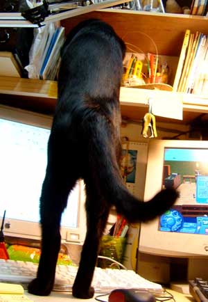 ぶんたろ〜は・・・。 毎日毎日。どうしても田崎場所に面白い物があると言い張る。 あちこちを覗いて無理無理入り込み、捜し物。 かわいいからいいんだけど、キ〜ボ〜ド踏みまくり、物を落としまくり。で、勿論いろんな物を持ち去る。 ボ〜ル投げもいっぱいしているのに。 たぶn天気が悪いせい。寒いせい。 クライアントさんの時間待ちをしている間・午前中、自宅寝室壁抜きとそこの猫用補修・・・。あらゆる事にあらゆる状況に猫問題。 あ〜毎日モニタが見えなくてむちゃくちゃ難儀。ぶんたろ〜がモニタ前に住んでいる。先に終わった菅又が呼んでくれているが、彼も膝の上にやっち・・。それに・・ぶんたろ〜は呼ばれても行かないし。 結局午後もずっと待っていたが井荻のクライアントさんは多忙で中止。雨もどしゃどしゃで。井荻荻窪方面にもろもろ用事があったが全部中止・・。 で、困り者だった電話を買いに。切れていた焼くためのDVDと名刺紙と。新宿の西口に車なのに・・長靴の田崎だった。 昼・エンチラ〜ダス、夜・天然酵母パンセット(卵とかチ〜ズとかフランクとか隠元サラダとか〜) 【菅又の一言】・・・《鼻が詰まっていて頭が悪い。クラリテン効いてきているが。》 |