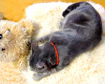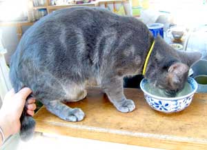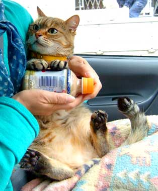![]() 熱い紅茶飲料で手を温めるだい猫。 |