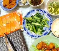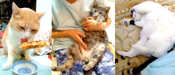 毎日暑い屋上(3階)でブラシ。てつは・・・喰いまくるカリカリは全部毛になっているようだ・・。毎日すごい量の毛。猫毛針刺しを作らんと欲しいている昨今の田崎。 朝から日差しを追いかけて猫達が走り回る。立ちはだかる猫を避けようと軒から落ちたり飛び降りたりする奴が居て、見ている田崎はすごく怖い。高所恐怖症だし・・。 で、以前から計画があった中庭に猫回廊を回す・というのを借作業。 だい・やっち・こちゃが立ちはだかっていると、騒動勃発。ぶんたろ〜・龍う太・さすけは無視して通り過ぎるのだが、それはそれで飛び越えられた猫が怒る。毎日毎日飽きもせず怒る。難儀。 午前中・近所の友人から林檎を貰う、夕方・常連客友人からキラキラ玉を貰う。夜・宅急便が来たらしいが不在。 夕方から猫缶買いと野菜・蜂蜜買いに荻窪。グルッペで青物野菜。今週来週は生活クラブから品物が来ないので、難儀。 段々寒くなってきたかもしれない、朝方猫が割りと静かだから。いつも身体が暑い龍う太以外は陽が射してくるまでぬくぬくBEDから出てこない。 昼・(夕方)鶏おこわと南瓜、夜・鶏おこわの残りとえらく美味いさんまとものすごく美味いブロッコリ〜と大蒜味噌をつけた白菜と納豆と明太子。 【菅又の一言】・・・《かりんとう喰って豆喰って麦酒飲んで、儂の部屋に何しに来ているんだ、やっち!!》 |