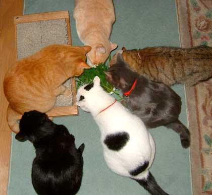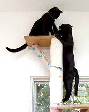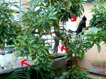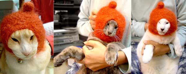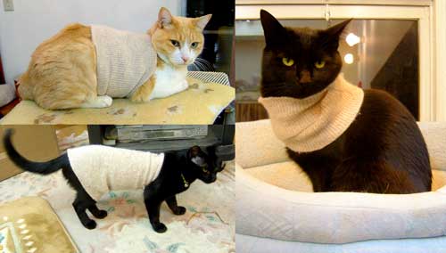 ![]() 切り取った袖やタ〜トル首を着る猫達。 |