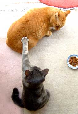 こうやってこちゃをいじめる。自分のカリカリを腹一杯喰って、こちゃのカリカリも欲しくないので、叩く。しつこく、こちゃが居なくなるまで叩く。困ったもんだ。そうそう、こちゃの瞬膜が出ている問題は、最近ほぼ解決。いじめられ慣れた・というか。 菅又は近所のビル非常扉直し完了。 午後、必要部品探しにあちこち。甲州街道沿いの松田金物店とか。・・。 ついでに西口ヨドバシでカレンダ予備紙とかCDとかとか。 カレンダ吊り下げ用針金が見つからない。固さや見栄えや工作しやすさで毎年同じ物にしているのだが、こんな普通の針金すら見つからないなんて、難儀。