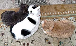 龍う太は水槽で水を飲む。足にセロテ〜プがついていても気にしないさ。 重い、重すぎる。龍う太は身体がしっかりがっしり筋肉質なので、ついでに長いので抱きにくい。我慢してじっと抱かれてはいるが。 だい猫とさすけは身体が短くふにゃふにゃしているのですごく抱きやすい。膝の上に抱いて腹を撫でると毛も長くて柔らかい、大人しいし。やっちは・・くにゃっとしていて溶けているのでしっかり人間が抱いていないと落ちてしまう。てつは尻尾が4cm位しかないせいかちょっと安定が悪くて抱きにくい、ぬるぬるするし。こちゃは・・重い重すぎる、毛も堅い、こわいというか。ぶんたろ〜もぬるぬる。つまり抱きやすいのはだいとさすけ。《今日の猫体重》は最新参照。 朝、風楽舎照明荷下ろし倉庫に仕舞い・予定が・・風楽舎社長来ない。その後の予定があるからちゃんと来るようにといってあるのに、来なかった。もう風楽舎やめちゃうぞ、倉庫貸さないぞ、菅又貸さないぞ。 大久保に退院する《元ぢぬし》さようなら云いに寄って、荻窪。菅又眼鏡直し。・・店番が昔からいるおぢさnで難儀。いつも担当して貰うおにいさnがいいのに。預けてきたのだが、どうなるのか電話待ち。つまり・・しばらくはすごく高い高性能眼鏡で外仕事。猫用生肝を買い。 居間用小さい卓を作ってもらった。 昼・パンセット、夜・今から何だろ、味醂干しえぼ鯛ウズラ豆ほうれん草と云っている菅又。 ちなみにパンセットの場合・・各種パンをト〜ストしてバタ・クリ〜ムチ〜ズ・ピ〜ナッツバタ、チキンかコンビ〜フハッシュかそんな物に半熟目玉焼きのせ、キャンベルス〜プか玉葱ス〜プ作る、サラダはチキン入りで各種野菜、チ〜ズ、紅茶珈琲オレンジジュ〜スヨ〜グルトドリンクつき。 そうそう、今日は豆乳飲料つき。最近早稲田通りのアジアン豆乳がお気に入り。それを再現せんと。普通にまずい豆乳に蜂蜜と生クリ〜ムと牛乳を入れたらそっくりになった。暖めて食す。健康か・・・これで少しは健康か!! 【菅又の一言】・・・《龍う太、違ったぶんたろ〜だった。》 体重一緒だもん、そっくり。ましてや首輪は同じ黄色だし。 |
